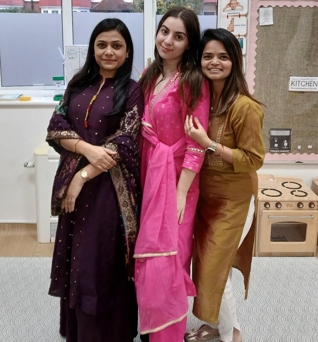 During both events our branches came alive with vibrant colours, festive decorations and joyful celebrations. The children enjoyed activities like diya painting, rangoli art, storytelling and music. A parent also joined us to share a beautiful Diwali story, helping the children understand its traditions and meaning. Children, Parents and staff dressed in colourful outfits and everyone enjoyed delicious traditional food. A true celebration of community and togetherness.
