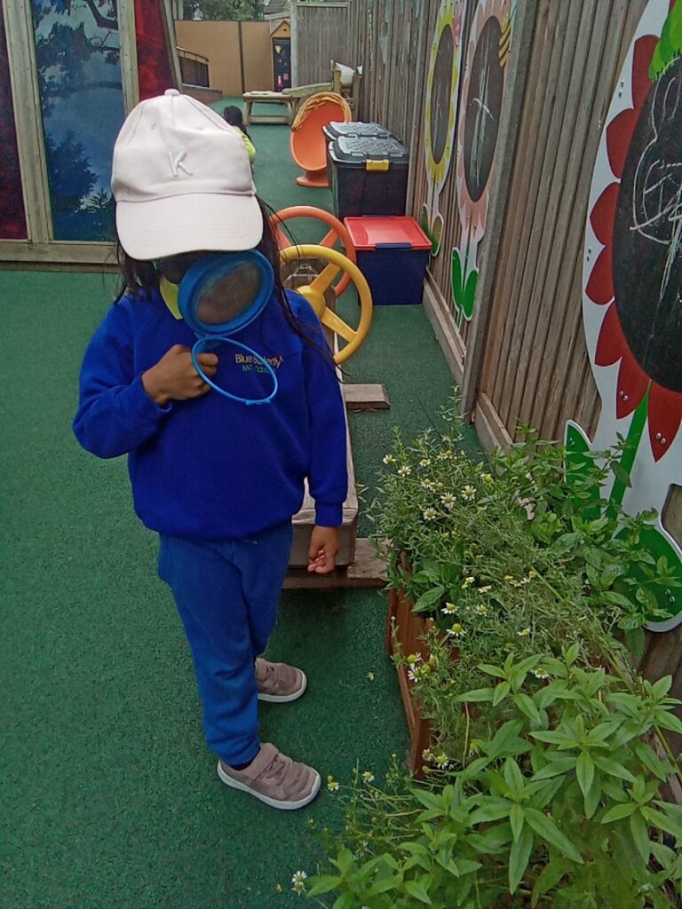There are lots of benefits to children spending time outside. It can help promote self regulation, encourages individuality and promotes a healthy lifestyle. The children also learn lots of new vocabulary and explore the world around them.